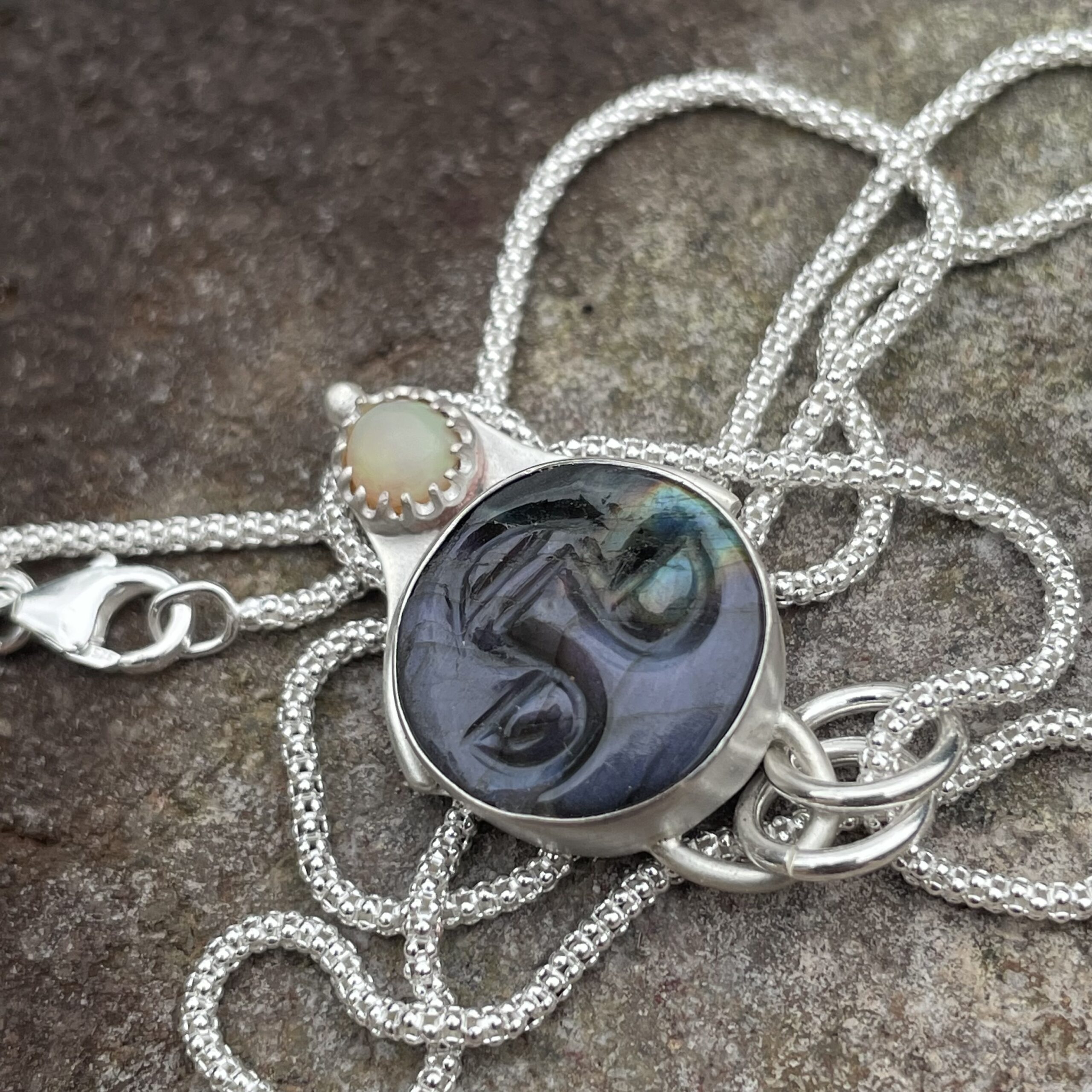 Labradorite is know for it’s protective qualities and abilities to enhance intuition, while opal symbolises inspiration and creativity.